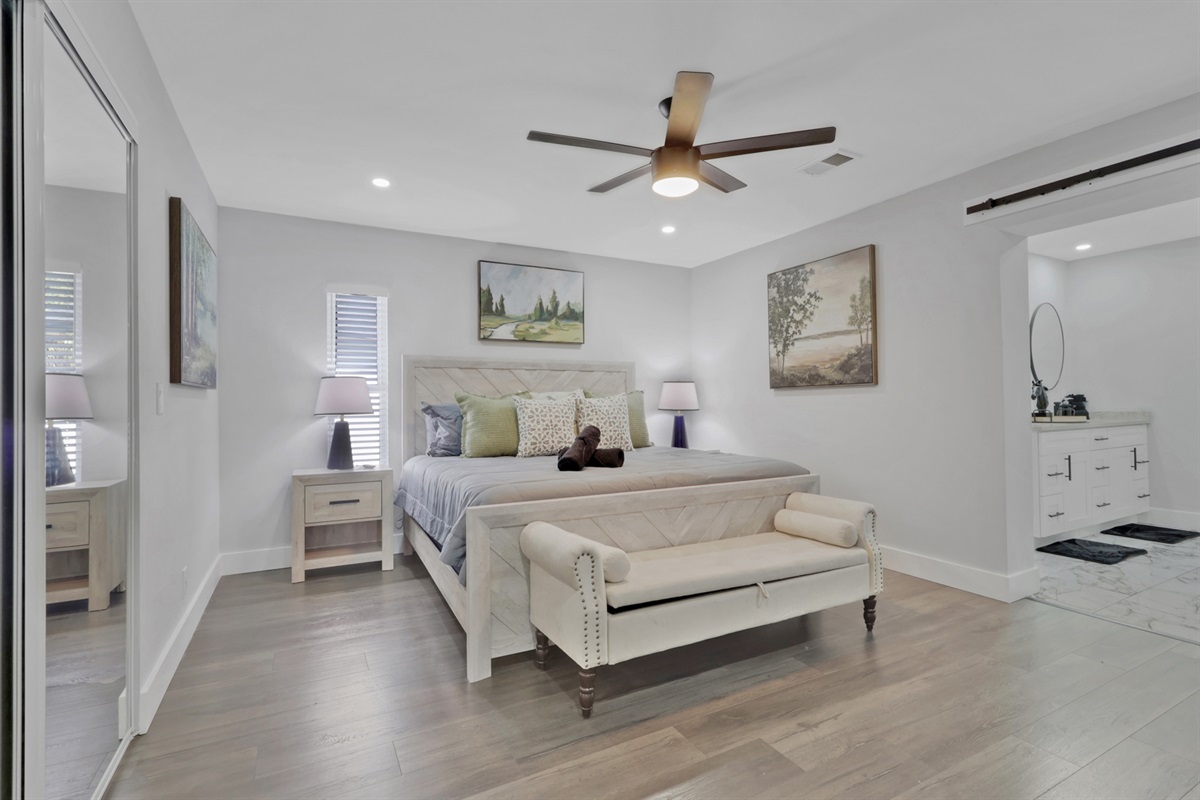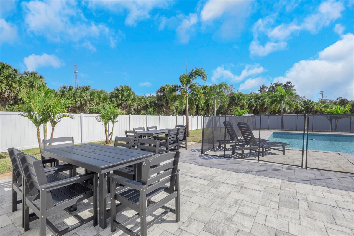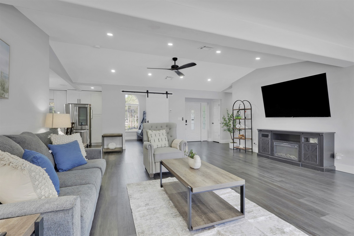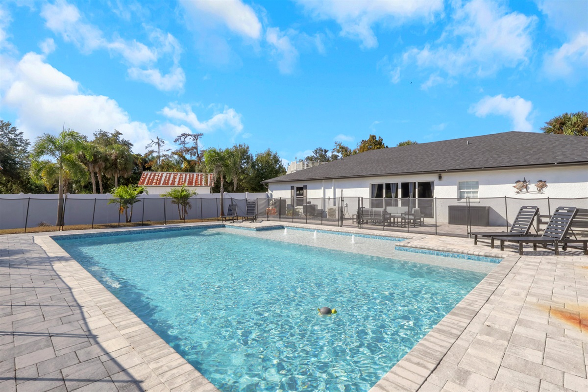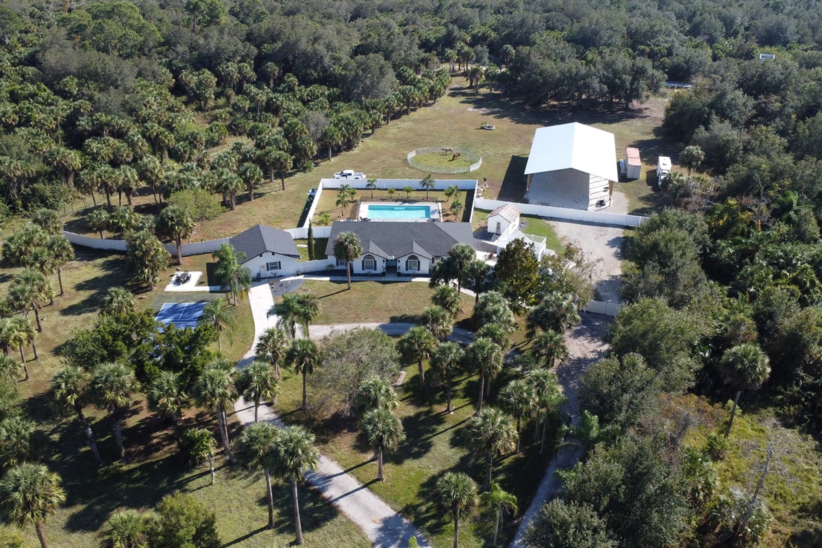 There are three homes on the property, and this listing is for the main 4-bedroom house, also rented on Airbnb. Guests enjoy a private pool area and a designated portion of the yard. A horse ranch is onsite, though horses remain behind privacy fencing and are not visible. Two outdoor cats also live on the property and may occasionally roam nearby.
