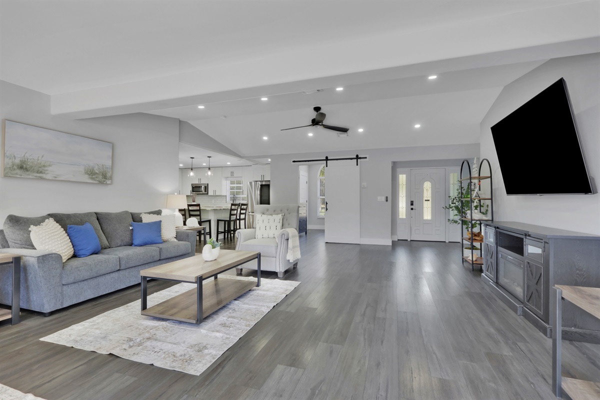 4 Bedrooms • 3 Bathrooms 3 Baths • Sleeps 7-10Welcome to your peaceful retreat on a beautiful 5-acre estate that backs up to 600 acres of county-owned land. This expansive 4BR/3BA home with a large heated pool offers comfort, privacy, and plenty of room to unwind. Enjoy multiple living areas, a fully equipped kitchen, Roku TV with live streaming, and direct access to a shared pickleball court—ideal for family fun or group gatherings.